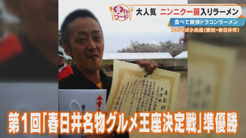 東京と名古屋の味を融合させた進化系まぜそばが大ヒットし、2016年に「春日井名物グルメ王座決定戦」で準優勝!それを機にラーメンへとさらに進化させ、2018年についに優勝!『ドラコンラーメン』が春日井市を代表するグルメになりました。
