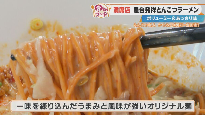 加藤愛アナウンサーがやってきたのは、愛知県豊田市の「とんこつ名人 かつみ屋」。この地で20年ほど続くとんこつラーメン専門店で、スープは“とんこつ”のみ!