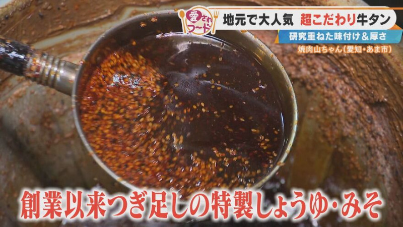 創業は昭和41年。初代の山﨑髙保さんが店を始めてから60年近く、地元の人に愛され続ける「焼肉山ちゃん」。髙保さんが作り出した特製のタレを今も継ぎ足しで作り、その味を守っています。その特製味噌ダレをまとった牛ホルモンやハラミも絶品で、甘くて深みのある味わいが口いっぱいに広がります。