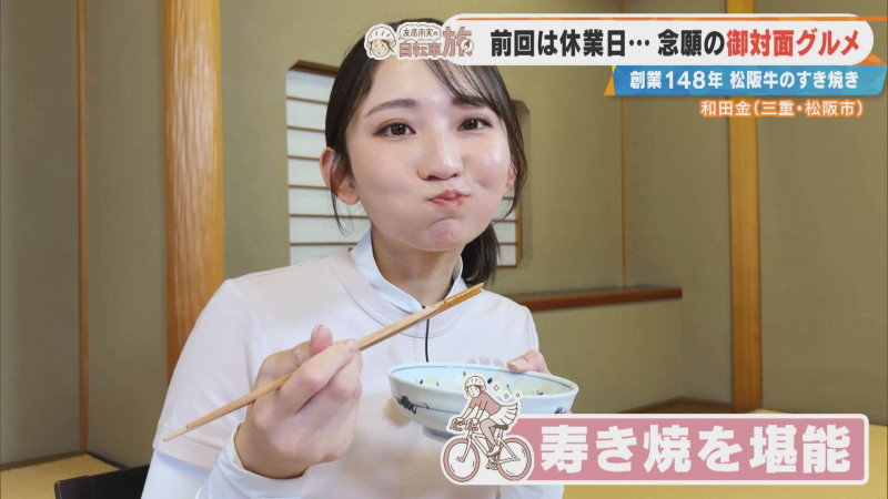 「24年間生きてきた中で一番おいしい」友廣アナ大絶賛のすき焼きとは?自転車旅ご褒美企画!