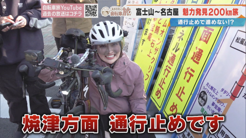 「残念だ、ショック」と嘆きながら自転車を走らせる友廣アナ。気を取り直して焼津市を目指します。
