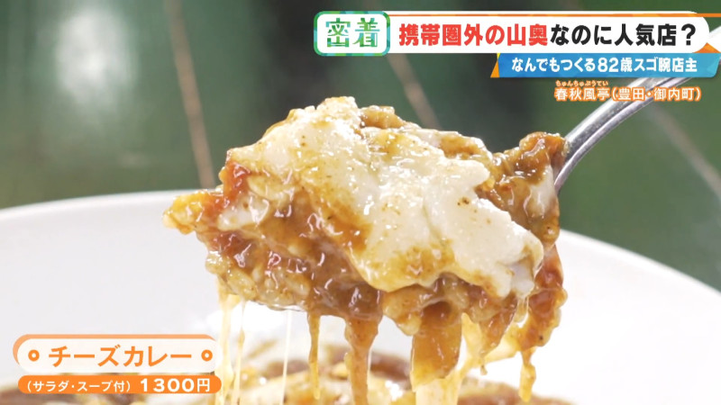 鶏ガラ、魚、さらに猪のガラを入れ、2日間かけてダシをとった特製ルーに、チーズをたっぷりとのせて焼き上げる「とろとろチーズカレー」。