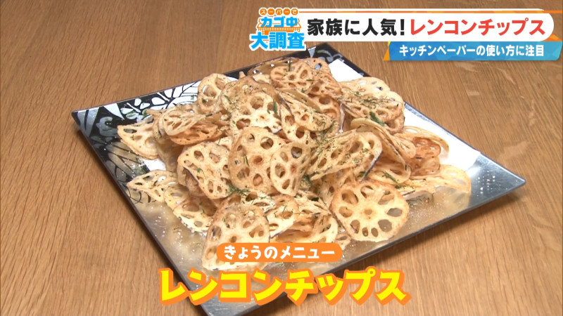 中学3年生の次女・華乃香さんは、受験が一段落。こちらの家庭では、家族みんなでご飯を作るのが習慣になっています。レンコンチップスを作るのは、父・谷口力さんです。