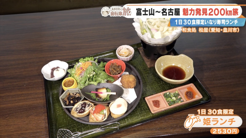 友廣アナは、気になった“食べ歩きいなり”のお店へ。創業90年の老舗「和食処 松屋」は、名物の創作いなりを中心に、地元三河の食材を使った料理が楽しめます。