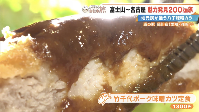 友廣アナは、八丁味噌を使った「竹千代ポーク味噌カツ定食」に舌鼓。「ん~濃厚!八丁味噌ならではの力強い旨味が一気に来ますね!カツもサックサクでジューシーです!」と笑顔に。