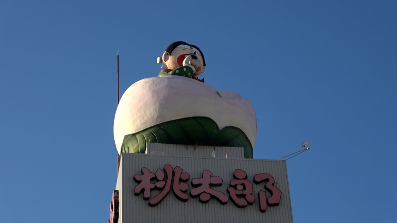地元の人なら誰もが知る名物が“桃から飛び出る桃太郎”。店舗のてっぺんにある直径3mの桃のオブジェが開き、身長4mの桃太郎の人形が飛び出る仕掛けは、四日市市のシンボル的存在。1988年に久保田本店ができた際に、創業者の姉である専務のアイデアで誕生しました。1日に5回、顔を出すとのこと。