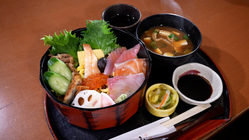 倉重さんオススメの東区グルメは、「白壁カフェ 花ごよみ」の「花ちらし」。マグロ、サーモンなど、その日の朝に市場から届いた新鮮な魚をはじめ、14種類の具材がのったちらし寿司です。