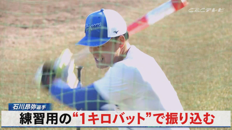 野手では打撃不振やケガの影響で今季22試合しか一軍出場できず、思うようなシーズンを送ることができなかった石川昂弥選手がフリーバッティングで柵越えを連発。その後は練習用である1キロのパットを振り込み、初日から無心に追い込む姿を見せた。