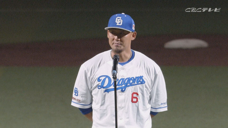 「中田翔、今日で現役生活が終わります。このチーム、このメンバーで優勝したかった。これからは、僕もいちファンとしてドラゴンズの応援を全力でしていきたい。ドラゴンズのユニフォームを着られて本当に幸せでした。今まで、本当にありがとうございました」