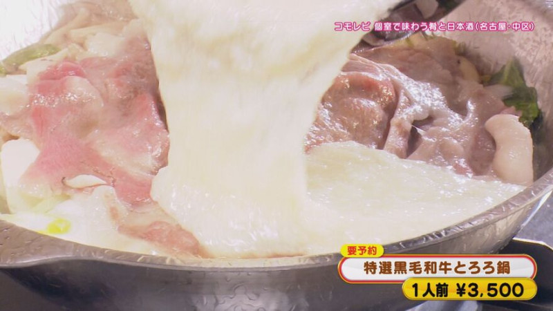 イチオシのメニューは、「特選黒毛和牛とろろ鍋」(1人前3,500円/要予約)。メインのお肉は、1本買いしたA5ランクの飛騨牛のリブロースを使用。他に、白菜や豆腐、鶏肉などが入っており、牛の甘みと鶏出汁の相性は抜群です。