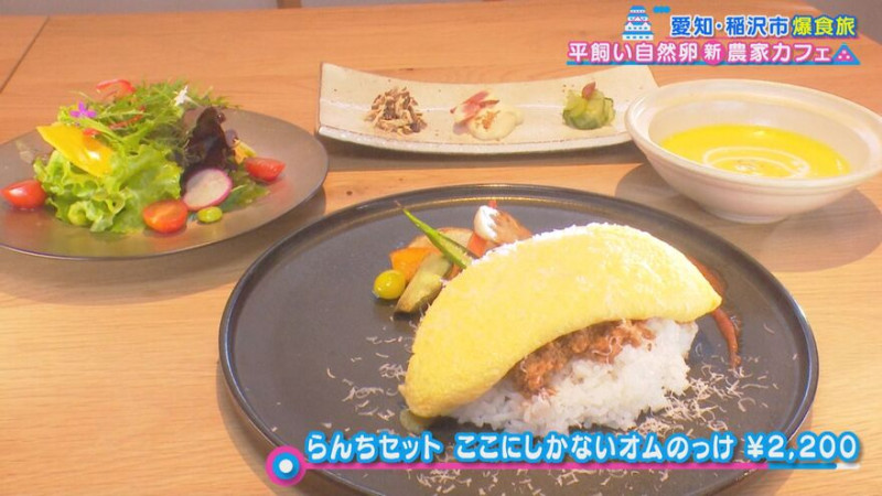 イチオシは、ミシュランガイド掲載店が監修のコース料理「らんちセット ここにしかないオムのっけ」(2,200円)。養老の湧き水の白湯から始まり、「歩荷親鳥と稲沢産生きくらげ」などの前菜に、歩荷農場の野菜を使ったサラダ。