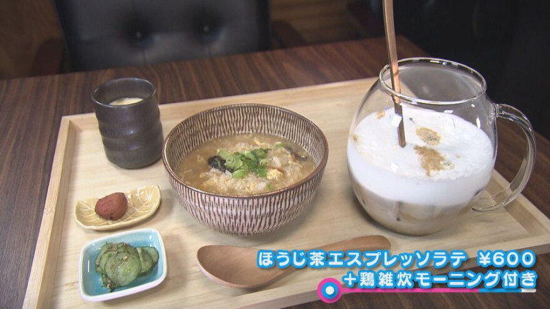 鶏雑炊には小鉢に茶碗蒸しが、おにぎりには小鉢や茶わん蒸しのほかに味噌汁まで付いて、お値段はドリンク代のみ!「コーヒー」(480円)や「ほうじ茶エスプレッソラテ」(600円)など、ドリンク代だけでごはんモーニングが楽しめます。