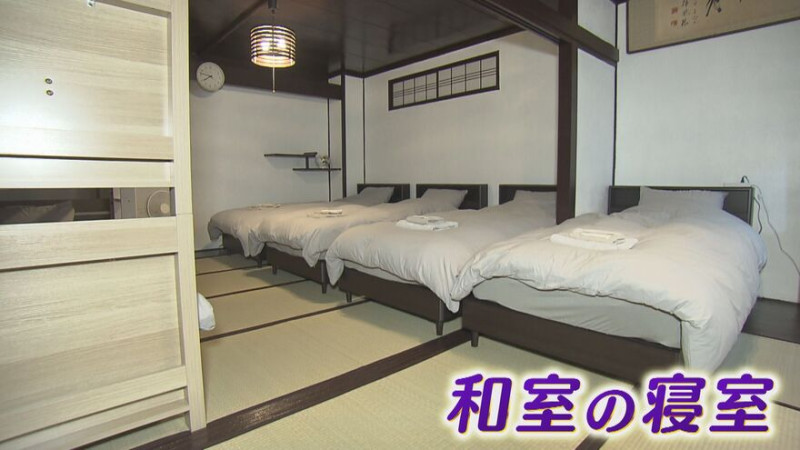 2階には畳の和室と洋室の寝室があり、最大13名まで宿泊が可能。1人1泊6,000円からと、とっても良心的です。