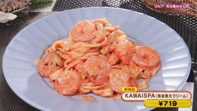 また、大きなエビがたっぷり入った「KAWAISPA(海老明太クリーム)」(719円)もオススメ。幅広の麺に濃厚な明太クリームソースがよく絡みます。