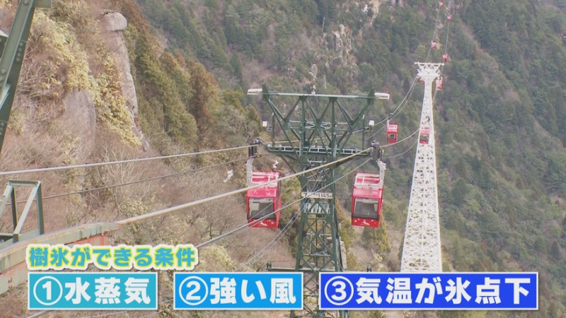 三重県と滋賀県の県境に位置する標高約1,200mの「御在所岳」。「御在所ロープウエイ」に乗って山頂へ行くと、この時季ならではの“樹氷”が見られます。水蒸気や強い風、氷点下といった気象条件がそろわないと見られない、まさに激レアな絶景!