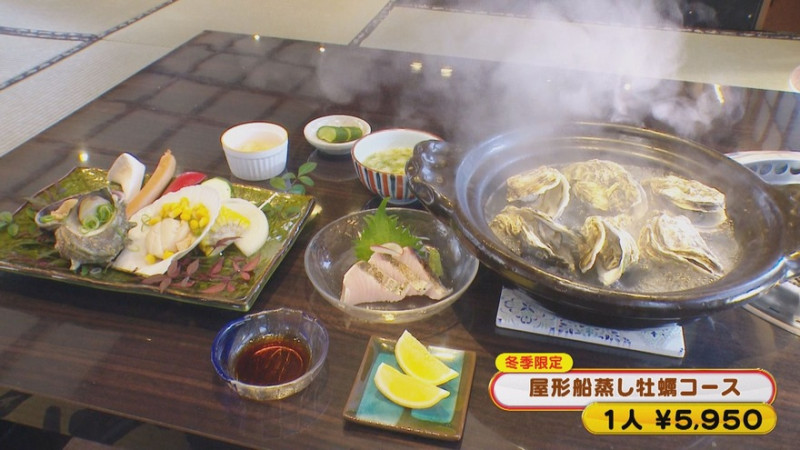 遊覧しながらいただけるグルメが、冬季限定「屋形船蒸し牡蠣コース」(1人 5,950円)。