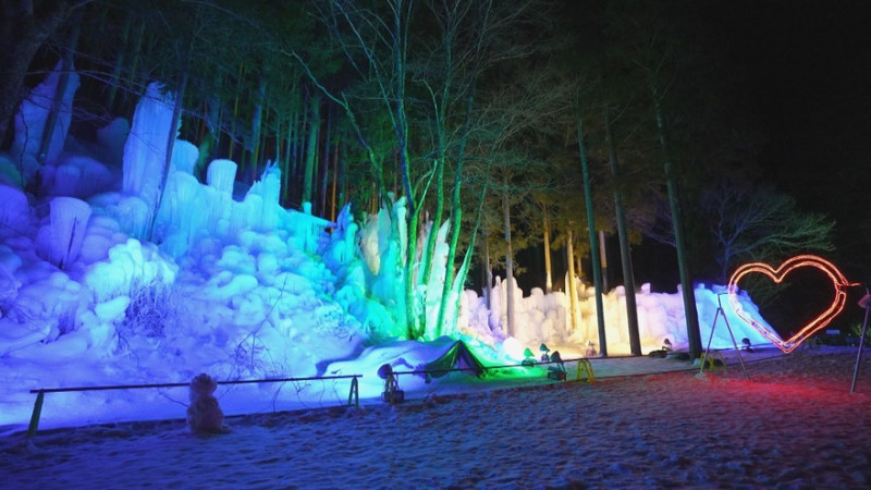 SNS映えすると人気のハートのイルミネーションや、砂防ダムのトンネルが青く照らされた神秘的なスポットも。