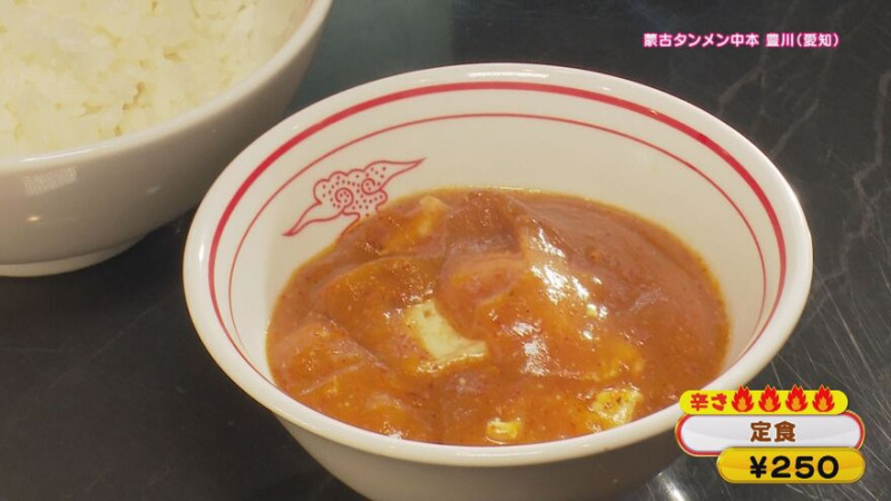 蒙古タンメンにトッピングされている辛子麻婆豆腐(辛さ4)とライスがセットになった「定食」(250円)もオススメ。お好みで辛子麻婆豆腐を味噌タンメンにのせ、蒙古タンメンとしていただくことができます。