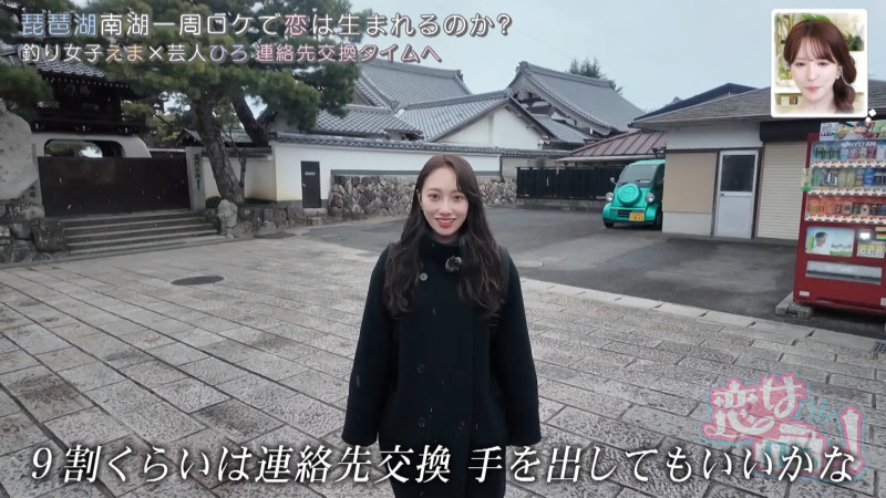 雪が降る中、10kmを歩いて浮御堂に到着。美しい景色の中で、“恋のお助けミッション”が発動します。
