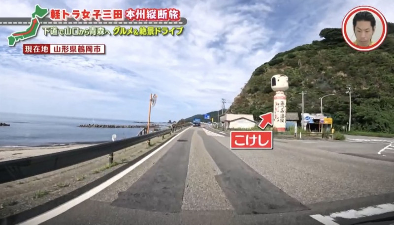 いつものように、独特な表現をする天真爛漫な三田。こけしを見たことがないのか、驚きながらひたすら軽トラで走り続けます。