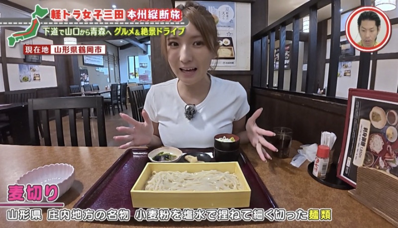 「細いのにめっちゃコシがある」山形県のご当地グルメ「麦切り」に感激!グラビアアイドル・三田悠貴の軽トラ本州縦断の旅