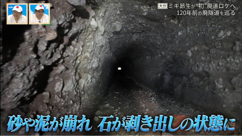 探索開始から45分。「すごいところ通るやん…」と昴生も驚くほどの道なき道を進むと、ひっそりと佇む廃隧道が姿を現します。