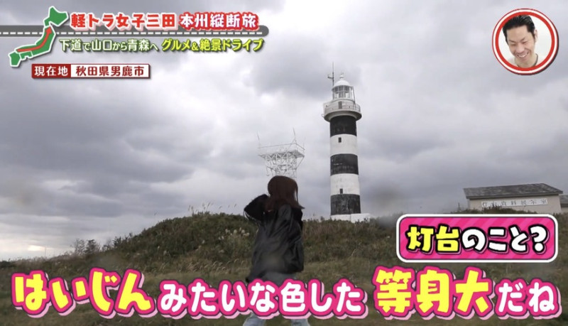 軽トラ旅14日目。秋田県の男鹿半島で名物の「石焼御膳」を堪能した三田は、「入道埼(にゅうどうさき)灯台」へ行ってみることに。