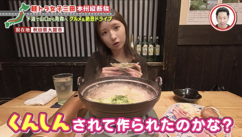 「お腹ぽんぽんで幸せ~」とお店をあとにした三田は、一日の疲れを癒すことに。現在、秋田県大館市。果たして、次は一体どんな旅になるのか…?