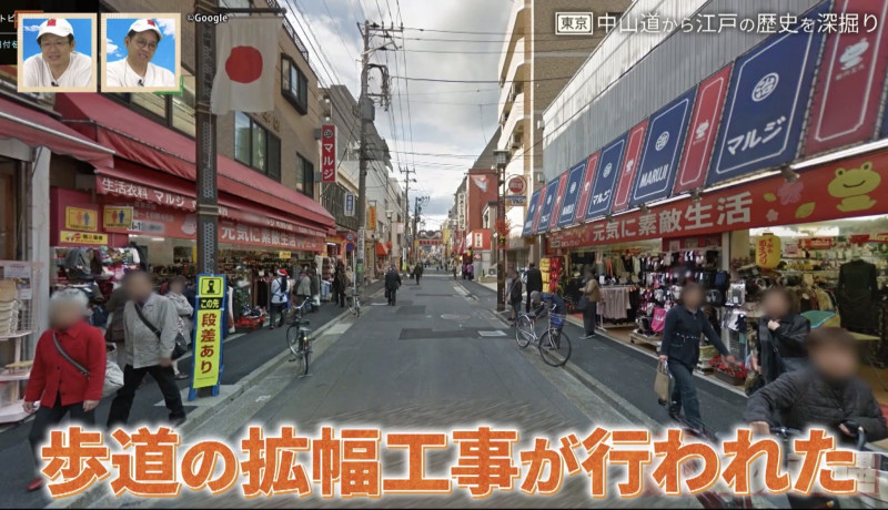 商店街の人に聞くと、昔から中山道の道幅は変わっていないそうですが、人の流れを円滑にするため、歩道の拡幅工事が行われたとのこと。