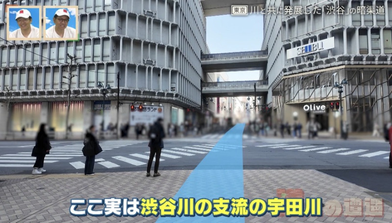 西武渋谷店のA館とB館の間を通る道の地下には今も宇田川が流れており、地名の「宇田川町」も川の名前から付けられたと言われています。