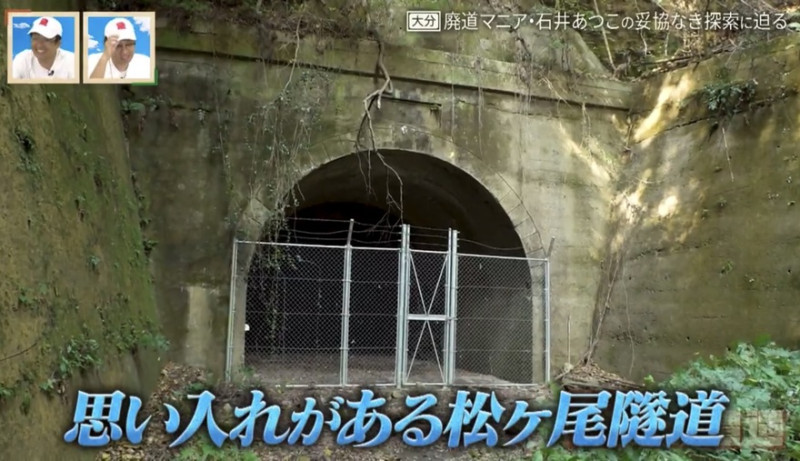 そんな国道213号を走り目的の廃道を目指す中、昴生が間近で見てみたいと、予定にはなかった隧道に急遽立ち寄ることに。石井さんが初めて国東半島の隧道巡りをした際に訪れたという、思い入れがある「松ヶ尾隧道」を間近で観察しました。