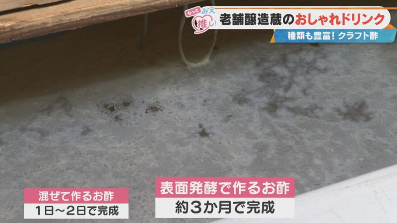 「表面発酵法と言いまして、空気に触れた表面が酢酸発酵し、対流することで時間をかけてお酢を作ります。だいたい3か月くらいかかりますね」