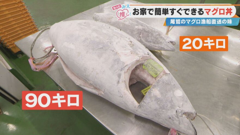 「今日はですね、せっかくよしお兄さん来ていただいたので、こちらで天然本マグロを今からカットするんです。これで90kgぐらい」