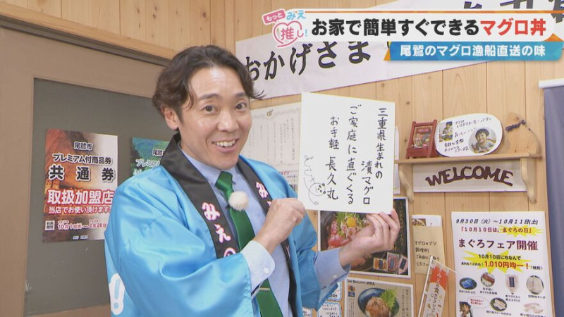 「本日の推しどころキャッチコピー!『三重県生まれの漬マグロ、ご家庭に直ぐくる、お手軽、長久丸』」