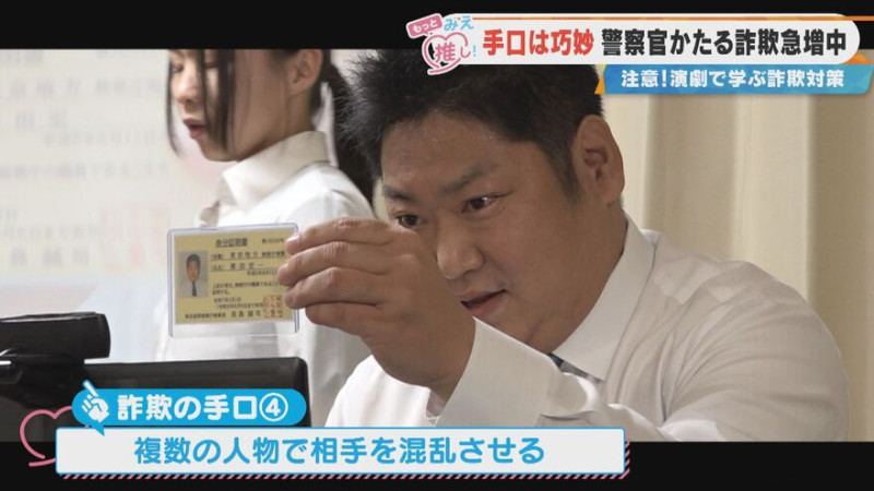 番組で紹介された演劇のシナリオは、実際に発生した事例を元に作成されており、特に被害が急増している「ニセ警察詐欺」の手口が詳細に再現されています。劇中では、福岡県警を名乗る偽警察官が登場し、被害者を巧妙に騙していく過程が描かれました。