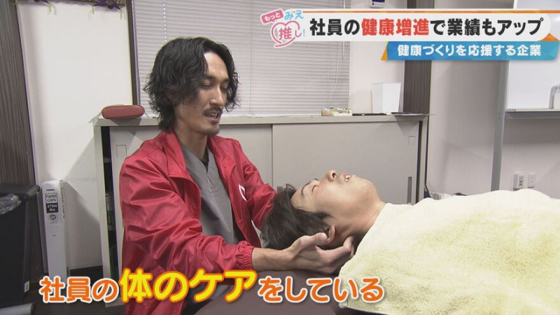 「整体の先生に訪問していただいて、社員に体のケアをしてもらっている時間です」