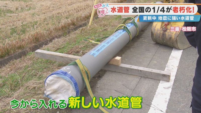 こうした被害を防ぐため、三重県では計画的に地震に強い水道管に更新する工事を進めています。松阪市内の工事現場を訪れると、掘削された地面から錆びた老朽管が取り出され、新しい水道管への交換作業が行われていました。