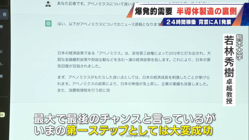 「これまで日本の半導体政策は、『遅い』『小さい』『絵に描いた餅』だった。今回は早くて、大量のお金が投入され、熊本もラピダスも盛り上がっている。2022年に生成AIが登場して、かなり大きくマーケット構造が変わった。最大で最後のチャンスと言っているが、今の第一ステップとしては大変成功」