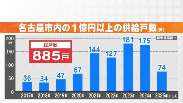 調査会社新東通信によりますと、名古屋市内の1億円を超える新築マンションは、2017年以降増加傾向が続き、去年までに約900戸に達しています。