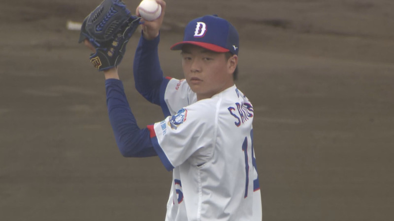 ドラフト1位の中西聖輝投手が対戦したのは石川昂弥選手と福永裕基選手。32球を投げ、ヒット性の当たりは6本。「打者のスイングが鋭く、高校時代との違いを痛感した」とプロのレベルを肌で感じた様子だが「通用する部分と足りない部分がはっきりした。低めへの制球力を磨きたい」と収穫と課題を冷静に分析した。