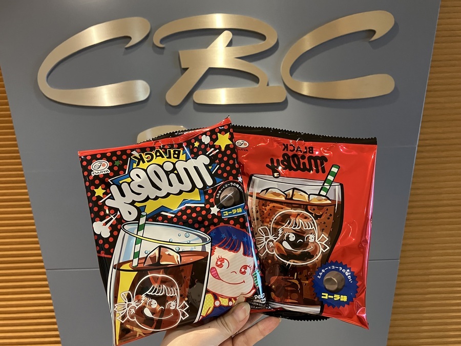 ポップなパッケージに彩られた「ブラックミルキー」ですが、その味は夏らしい清涼感のあるコーラ味とのこと。