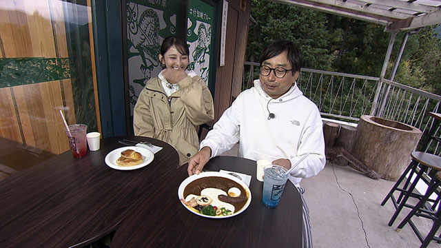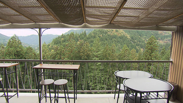 付知峡の自然を一望しながら、ジビエカレーやスイーツをいただくことができる。