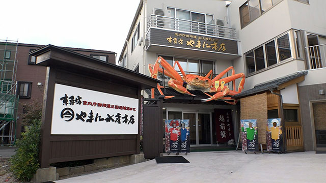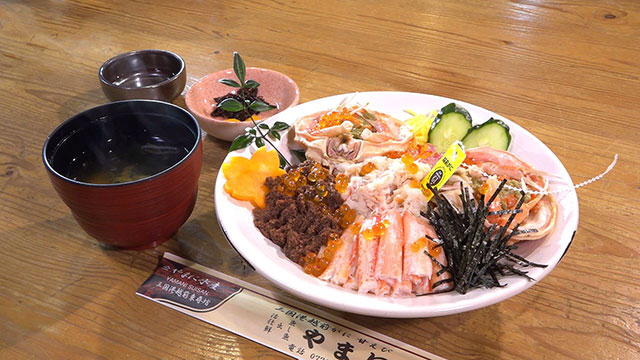 世界三大奇勝のひとつに選ばれている東尋坊は約1キロも続く世界的に珍しいスポット。東尋坊の目の前には、お土産店や越前ガニグルメが食べられる商店街がある。越前ガニ料理専門店「やまに水産」は三国港の仲買業者の資格を持ち宮内庁御用達の越前ガニを取り扱う。特に“極み”は1杯15万円以上と超高級品!