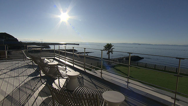去年10月オープン。美容品の製造・販売する会社が手掛けるラグジュアリーな宿泊施設。1日1組限定の一棟貸しで伊勢湾を望む絶景ロケーションにプール、サウナ、ジャグジーを完備。最大10名まで宿泊可能。