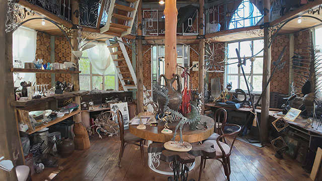 名古屋出身で、この白川町に拠点を構えて20年以上になるアイアンアーティスト「林宗興」さんのギャラリー兼アトリエ。