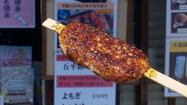 土曜、日曜と祝日のみ営業。観光客に人気の団子屋さん。自家製味噌を使った「五平餅」や米粉100%の4種類の「みたらし団子」が頂ける。