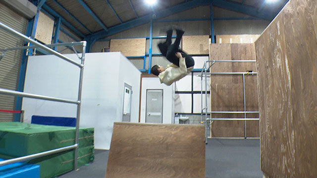 去年12月にオープンしたパルクール専門のスタジオ。子どもから大人まで運動のレベルを問わず幅広い年齢層へレッスンをしている。