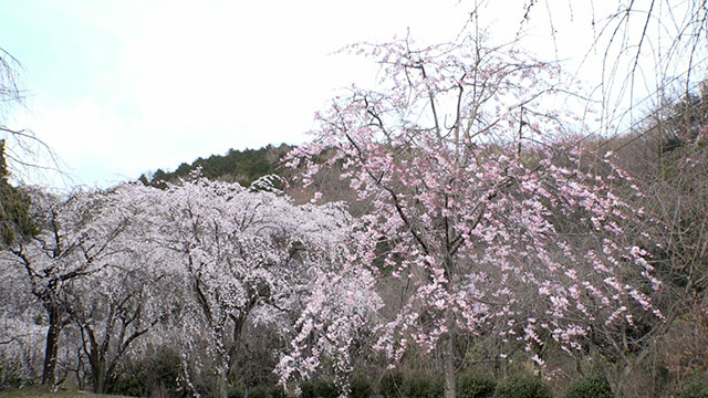 圧巻のシダレザクラ「東谷山フルーツパーク」