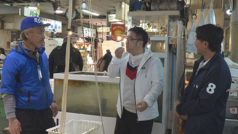 名古屋駅から徒歩5分、三河湾、伊勢湾を中心に全国から魚介類が集まる名古屋の台所、柳橋中央市場のマルナカ食品センター。プロの料理人から一般客まで、市場ならではの食材を購入しようという人で、早朝から賑わっています。