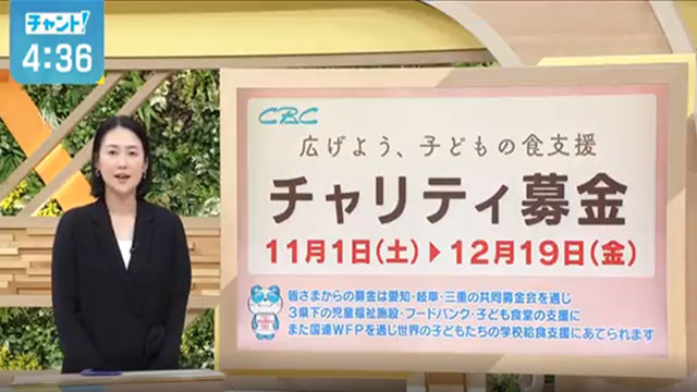 CBCチャリティ募金2025の受付は終了いたしました。皆さまからお寄せいただいた募金総額は、1528万2739円(12月22日集計)となりました。皆さまからの募金は愛知・岐阜・三重の共同募金会を通じ3県下の児童福祉施設・フードバンク・子ども食堂の支援に、また国連WFPを通じ世界の子ども達の学校給食支援などに役立てさせていただきます。
